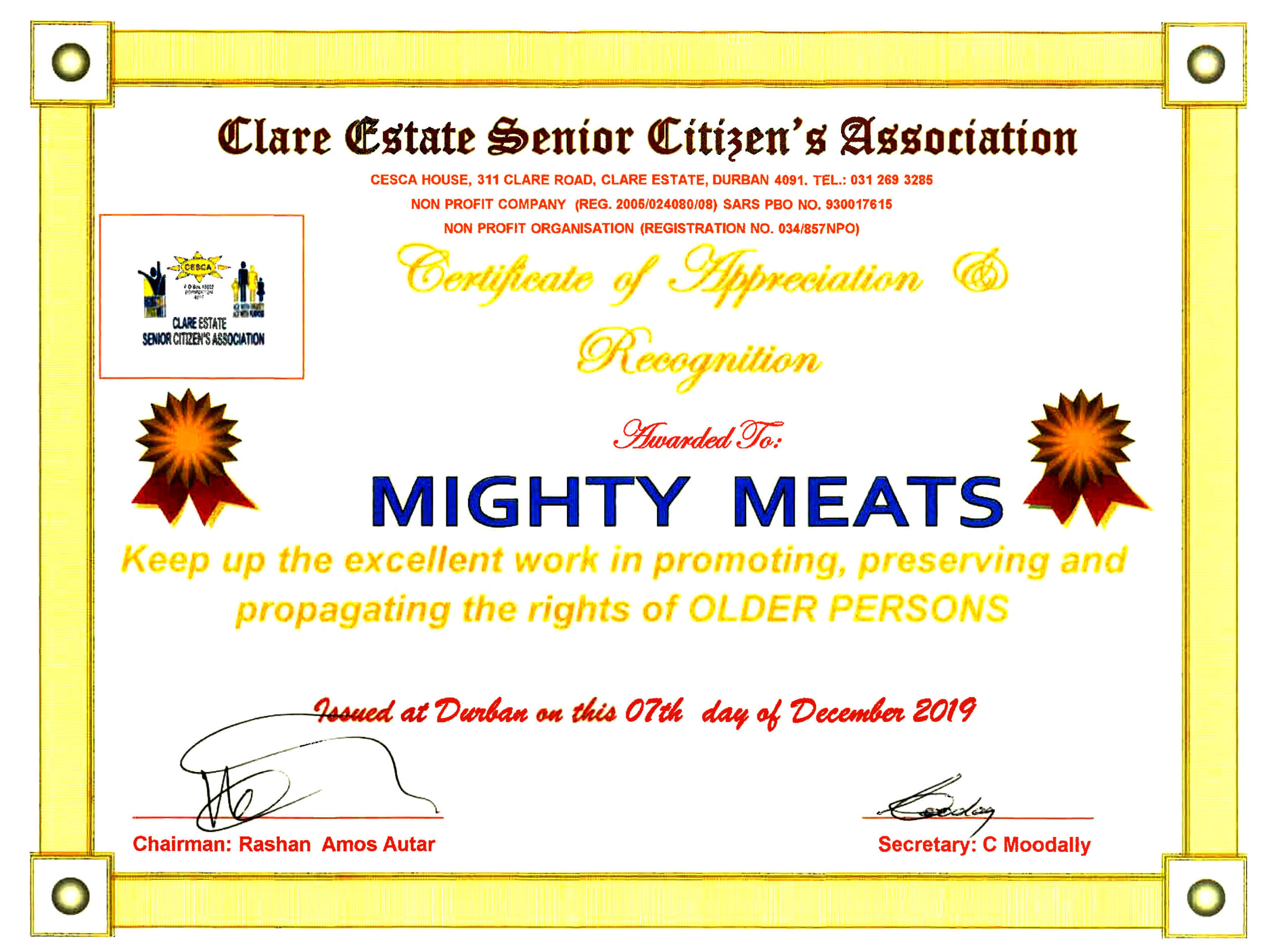 Mighty Meats strives to manage its operations at an optimal level to ensure that pricing to the consumer is kept at the lowest possible levels. Additionally, it regularly participates in initiatives by select NGOs/NPOs which are focussed on community upliftment.